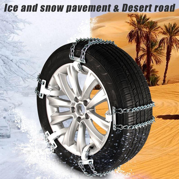 روش استفاده: ۶ عدد زنجیر چرخ یخ شکن برای تایر های جلویی (۳ عدد برای هر لاستیک) که تسمه ها به دور لاستیک چرخانده میشود و درقفل مخصوص قرار میگیرد