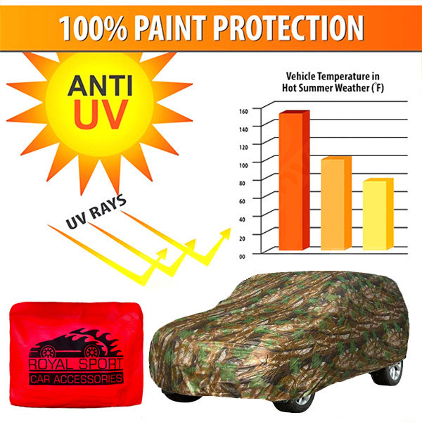 چادر خودرو مدل استتار رویال اسپرت با طراحی خاص و پارچهی ضدآب، محافظی مطمئن در برابر آفتاب، گرد و غبار و فضولات پرندگان است. این چادر با دوخت محکم، طرح درختی زیبا و فیت کامل بدنه، هم ظاهر خاصی به خودرو میدهد و هم از رنگ و بدنهی آن بهخوبی محافظت میکند.
