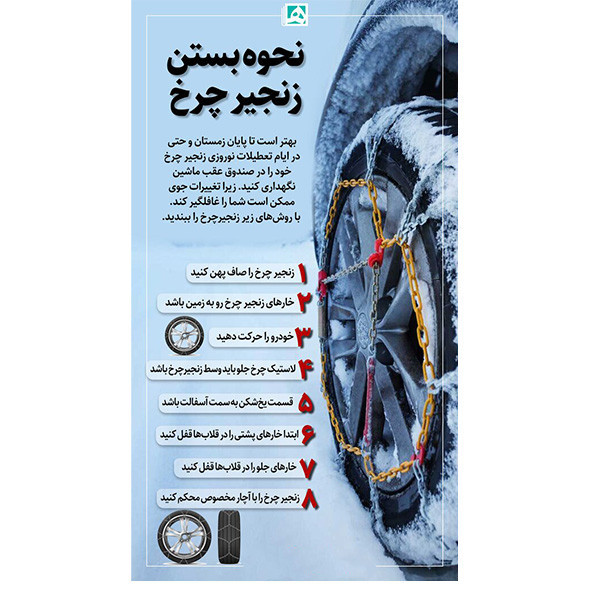 زنجیر چرخ خودرو یکی از ملزومات خودرو در فصول سرد سال میباشد. این زنجیر چرخ تایر خودرو را دربر میگیرد و مانع از لغزیدن آن روی یخ و برف میشود و با پوشش فلزی و یخشکن که بر روی لاستیک ایجاد میکند از لغزیدن خودرو بر روی برف و یخ جلوگیری میکند و به سادگی بر روی تایر نصب است. بهراحتی روی تایرها نصب میشود و بههمراه آن آچاری مناسب برای تسهیل کار عرضه میگردد. از این رو بههمراه داشتن آن در صندوق عقب خودرو در فصل سرما علاوه بر کارآمد بودن فضای زیادی از صندوق را اشغال نمیکند.