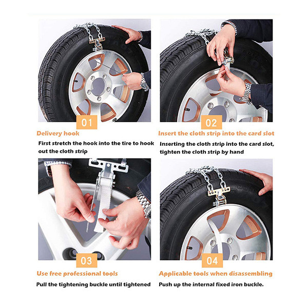 زنجیر چرخ خودرو یکی از ملزومات خودرو در فصول سرد سال میباشد. این زنجیر چرخ تایر خودرو را دربر میگیرد و مانع از لغزیدن آن روی یخ و برف میشود و با پوشش فلزی و یخشکن که بر روی لاستیک ایجاد میکند از لغزیدن خودرو بر روی برف و یخ جلوگیری میکند و به سادگی بر روی تایر نصب است. بهراحتی روی تایرها نصب میشود و بههمراه آن آچاری مناسب برای تسهیل کار عرضه میگردد. از این رو بههمراه داشتن آن در صندوق عقب خودرو در فصل سرما علاوه بر کارآمد بودن فضای زیادی از صندوق را اشغال نمیکند.