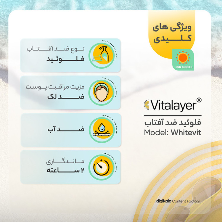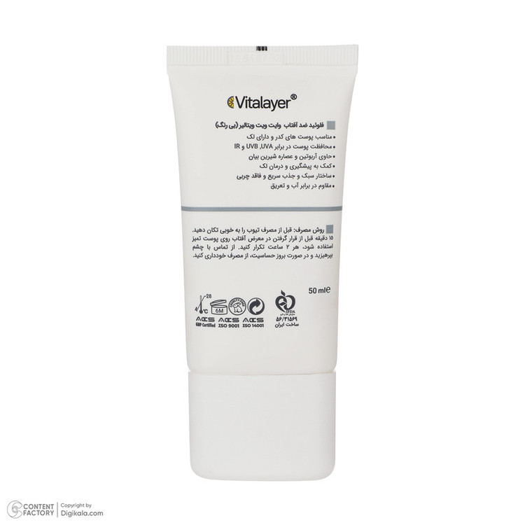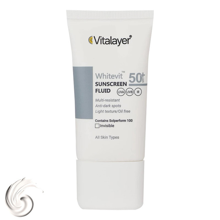 فلوئید ضدآفتاب بی‌رنگ ویتالیر SPF50 مدل Whitevit مناسب انواع پوست، حجم 50 میلی‌لیتر