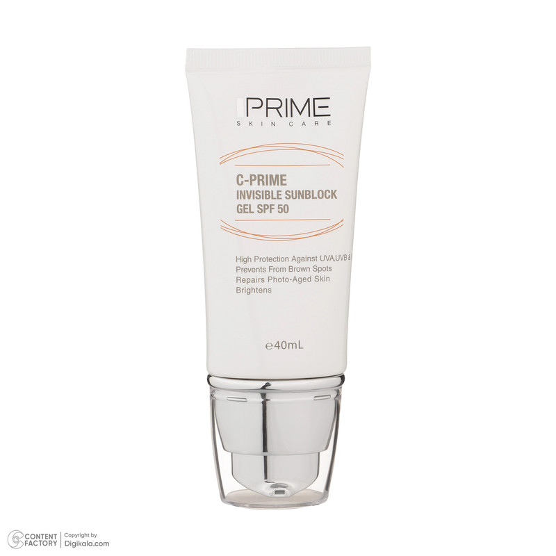ژل ضدآفتاب بی‌رنگ پرایم SPF50 مدل C-Prime مناسب برای انواع پوست، حجم 40 میلی‌لیتر