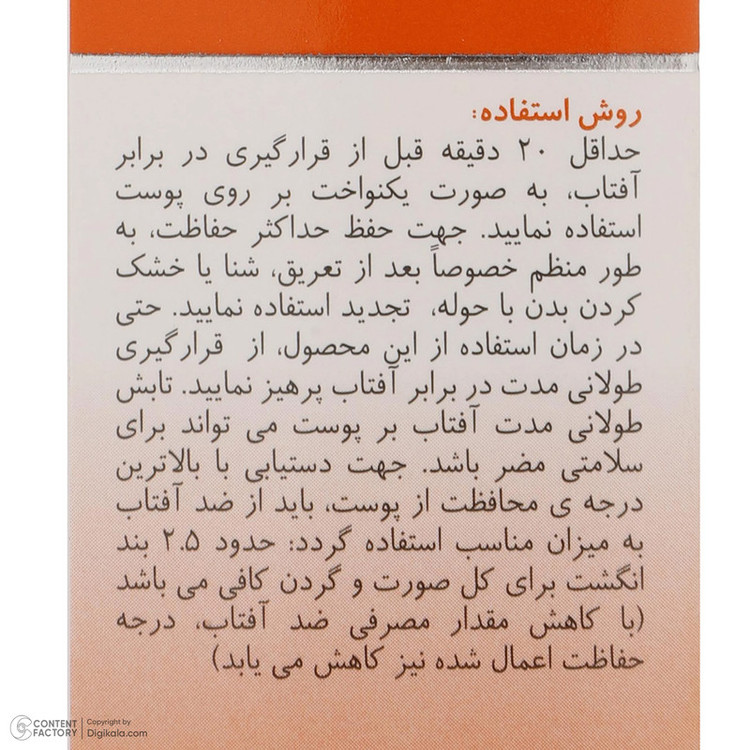 ویژگیهای ضدآفتاب : ضد آب , محافظت کننده در برابر اشعه UVA , محافظت کننده در برابر اشعه UVB