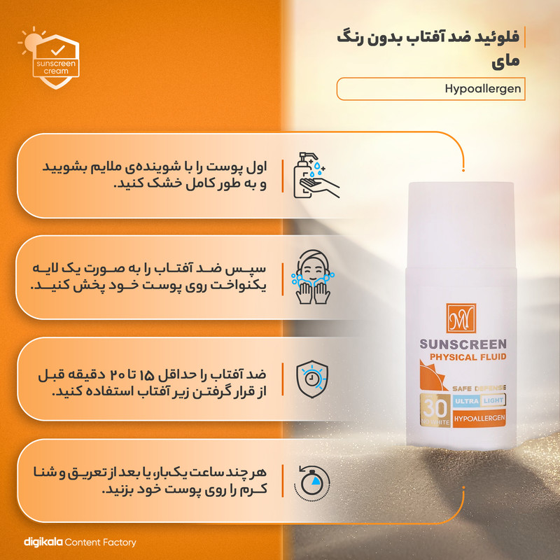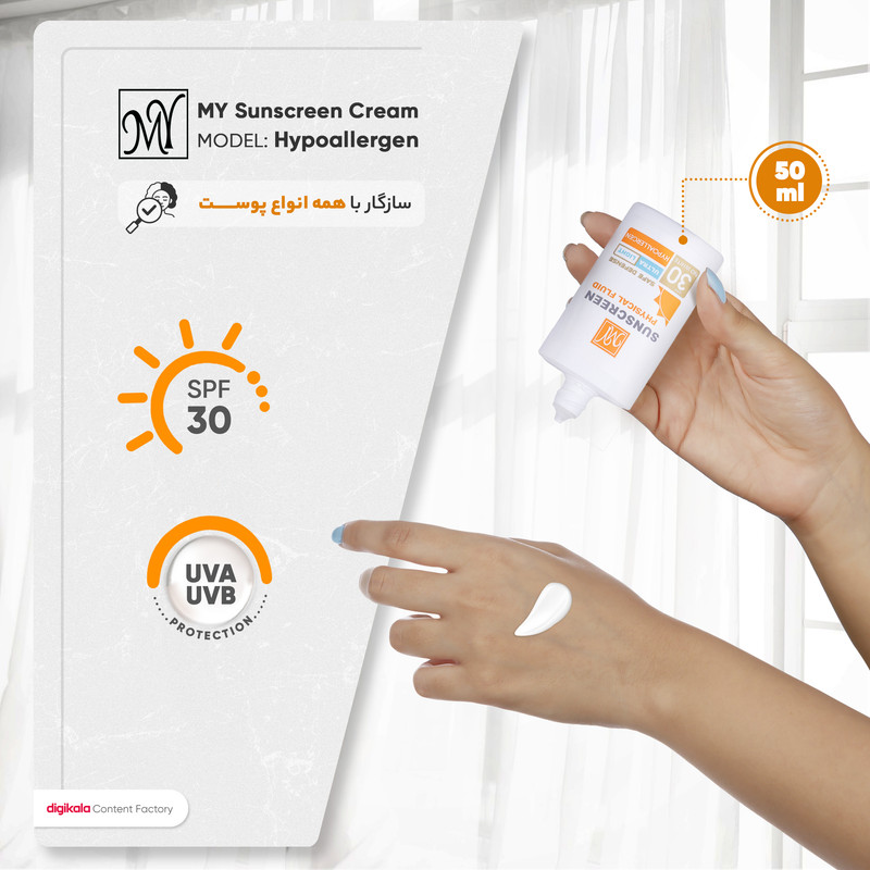 فلوئید ضدآفتاب بی‌رنگ مای +SPF30 مدل Physicall مناسب انوع پوست، حجم 50 میلی‌لیتر
