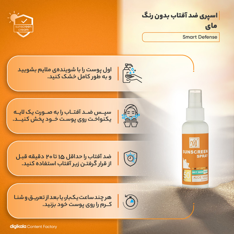 ضد آب , محافظت کننده در برابر اشعه UVA , محافظت کننده در برابر اشعه UVB , فاقد پارابن , فاقد سیلیکون