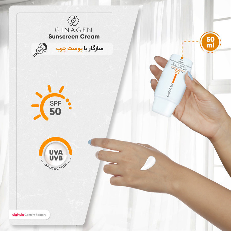 کرم ضدآفتاب بی‌رنگ ژیناژن مدل SPF50، مناسب پوست‌های چرب، حجم 50 میلی‌لیتر
