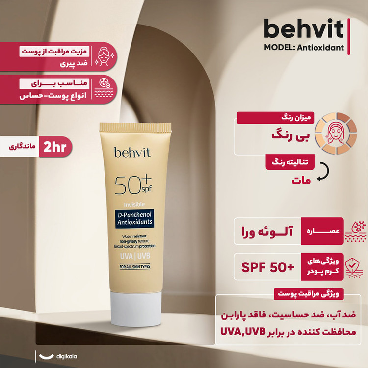 ویژگیهای ضدآفتاب : ضد آب , محافظت کننده در برابر اشعه UVA , محافظت کننده در برابر اشعه UVB , ضد حساسیت , فاقد پارابن