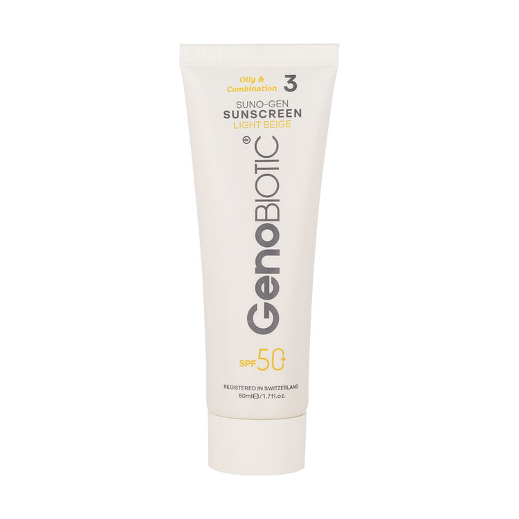 کرم ضدآفتاب رنگی ژنوبایوتیک SPF 50 مدل SUNO محافظ UVA ،UVB، مناسب پوست‌های چرب، حجم 50 میلی‌لیتر