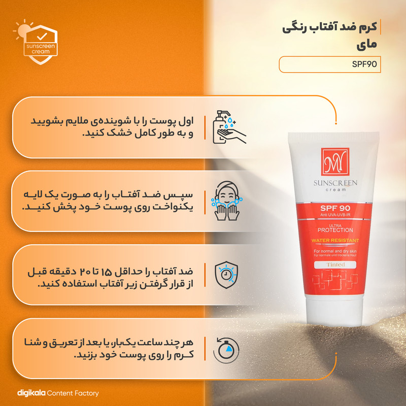 کرم ضدآفتاب رنگی مای مدل SPF90، مناسب پوست‌های نرمال و خشک، حجم 50 میلی‌لیتر