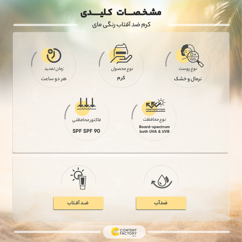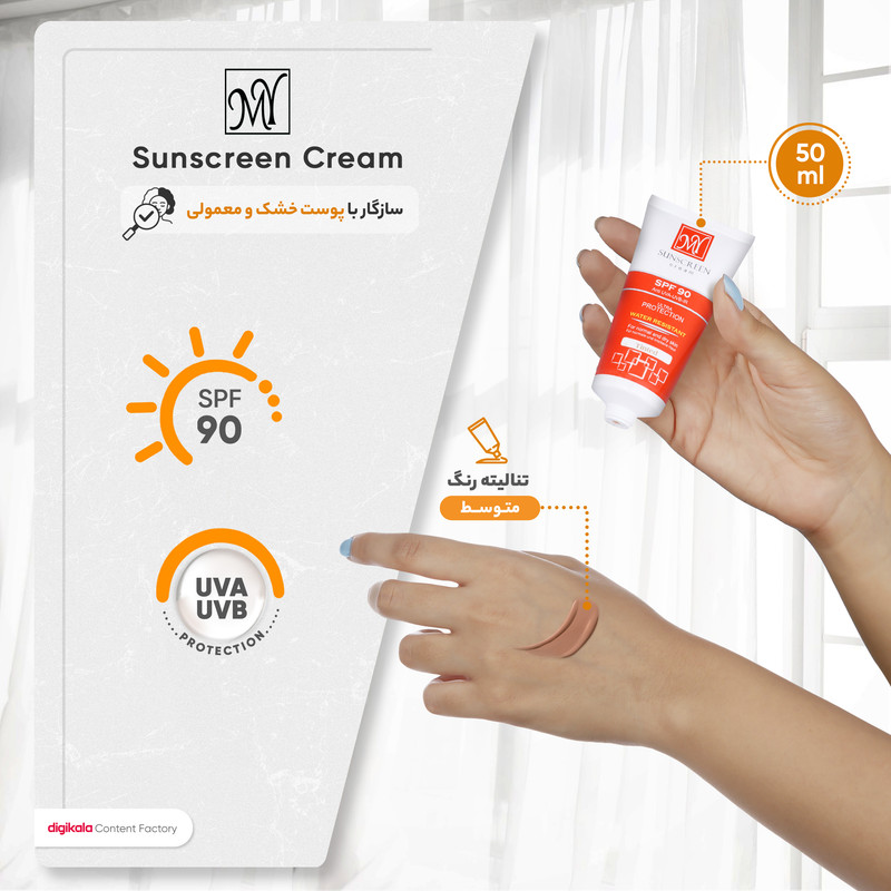 کرم ضدآفتاب رنگی مای مدل SPF90، مناسب پوست‌های نرمال و خشک، حجم 50 میلی‌لیتر