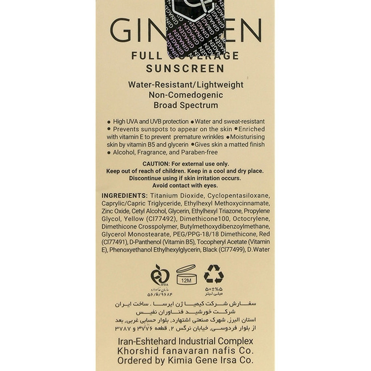 ضد آب , محافظت کننده در برابر اشعه UVA , محافظت کننده در برابر اشعه UVB , فاقد پارابن