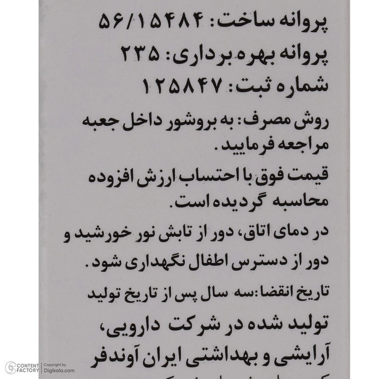 ناحیه استفاده: صورت , گردن
