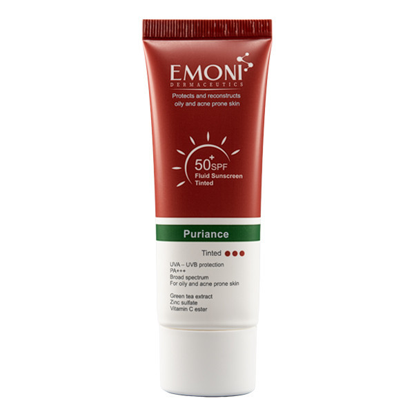 فلوئید ضد آفتاب رنگی امونی درماسیوتیکس SPF 50 مدل پیورینس ‌مناسب پوست‌های چرب، مختلط و مستعد آکنه حجم 50 میلی‌لیتر