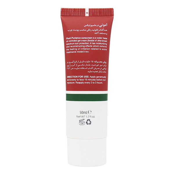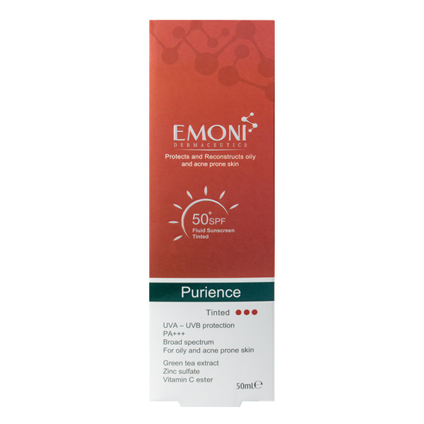 فلوئید ضد آفتاب رنگی امونی درماسیوتیکس SPF 50 مدل پیورینس ‌مناسب پوست‌های چرب، مختلط و مستعد آکنه حجم 50 میلی‌لیتر