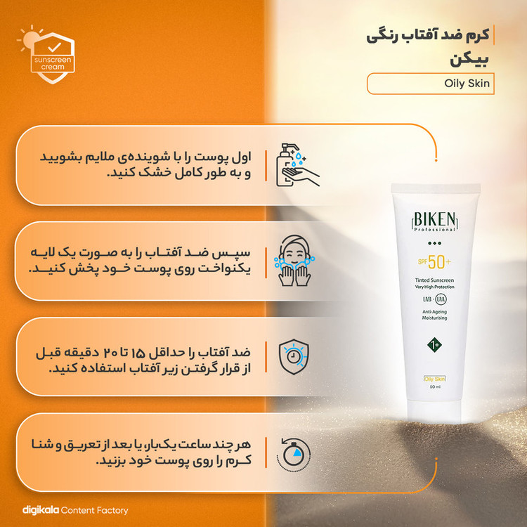 راهنمای استفاده : نیم ساعت قبل از قرار گرفتن در معرض نور آفتاب به مقدار کافی از فرآورده را بر روی پوست صورت، گردن و دست ها مالیده و به خوبی ماساژ دهید تا جذب شود. به علت غلظت بالای کرم مقدار کمی از آن استفاده شود که برای پوشانندگی کافی است و هر 8 ساعت یک بار تمدید گردد.