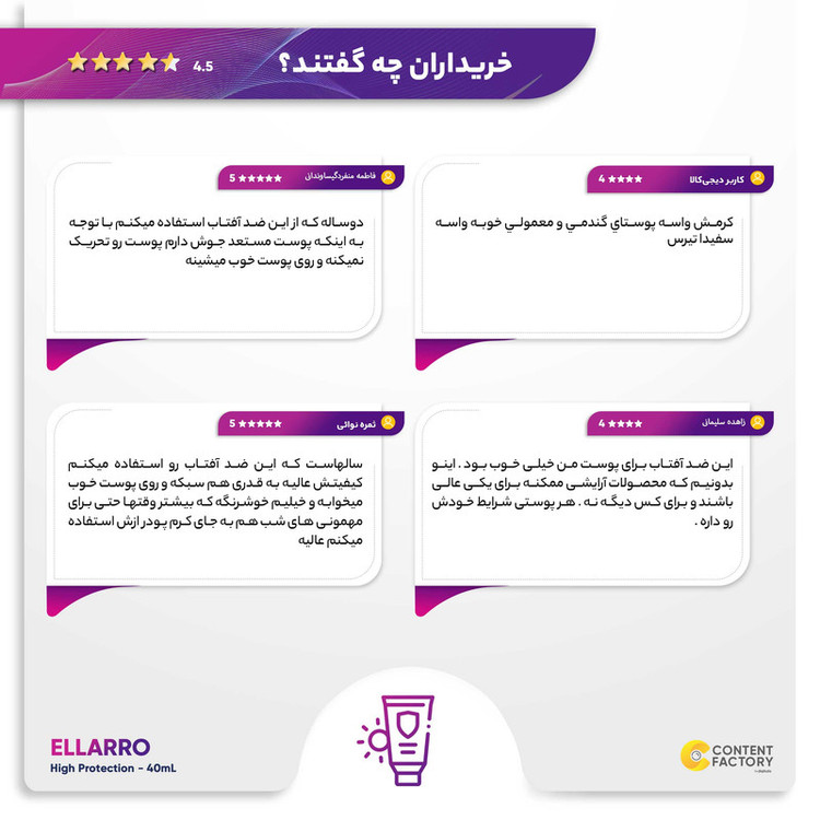 ویژگیهای ضدآفتاب : ضد آب , محافظت کننده در برابر اشعه UVA , محافظت کننده در برابر اشعه UVB