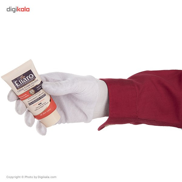 مدل «Protection Moyenne» کرم ضدآفتاب برند «الارو» (Ellaro) سری «Foundation Effect» همانطور که از نامش پیداست دارای اثر کرمپودری است که میتواند هم از پوستتان در برابر اشعههای مضر نور خورشید محافظت کند و هم کاربردی مشابه کرمپودر و آرایشی داشته باشد. رنگ کرم الارو بژ طبیعی است که برای افرادی که پوستی روشن و حتی گندمی دارند مناسب خواهد بود. ماندگاری ضدآفتاب کرمپودری الارو بالا است و این کرم فاقد پارابن و چربی است و استفاده از آن به افرادی که پوستهای چرب و مستعد جوش دارند توصیه میشود. الارو با دارا بودن SPF25 از پوست صورت در برابر اشعههای UVA و UVB محافظت میکند و مانع از آفتاب سوختگی پوست میشود. SPF25 میزان تقریباً ضعیفی نسبتبه SPFهای بالاتر محسوب میشود و بهتر است افرادی که پوست خیلی حساسی نسبتبه آفتاب ندارند از این SPF استفاده کنند. ضدآفتابهای الارو از نوع کرمپودری و معمولی در حجمها و SPFهای مختلف وجود دارند که از کیفیت بالایی برخوردارند و شما میتوانید نوعی که با پوستتان سازگارتر است را مورداستفاده قرار دهید. حجم کرم ضدآفتاب الارو چهل میلیلیتر است که در تیوپی پلاستیکی گنجانده شده است. کرم الارو دوکاره است و با کیفیت و قیمت مناسبی که دارند یک انتخاب عالی برای خانمها خواهد بود.