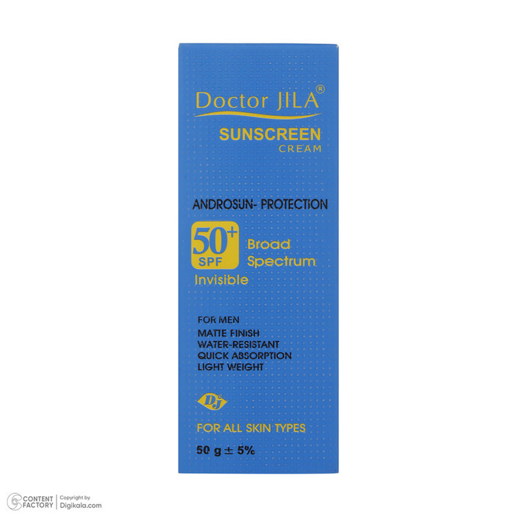 کرم ضد آفتاب بدون رنگ آقایان دکتر ژیلا SPF 50 مدل Androsun ‌مناسب انواع پوست وزن 50 گرم
